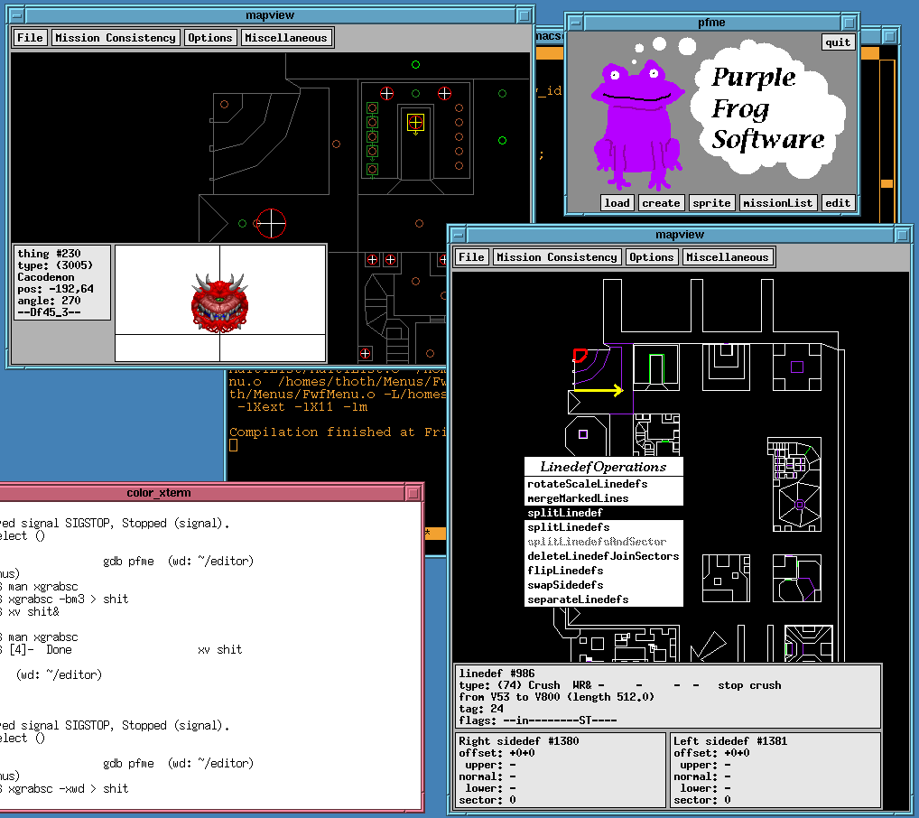 It is most similar to the mission editor DEU by Raphael Quinet (there are accents in there somewhere) and friends. Unlike its cousins based in non-operating-systems, it handles editing of multiple missions at the same time, and handles multiple views of the same mission at once.