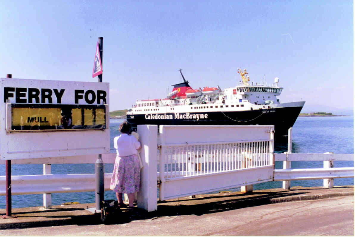 The ferry "Isle of Mull" docks at the mainland port of Oban.