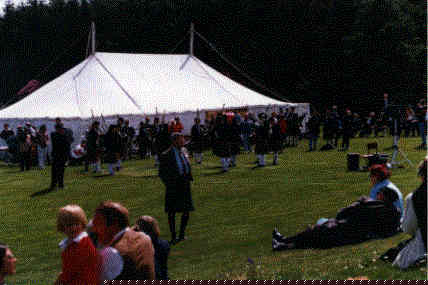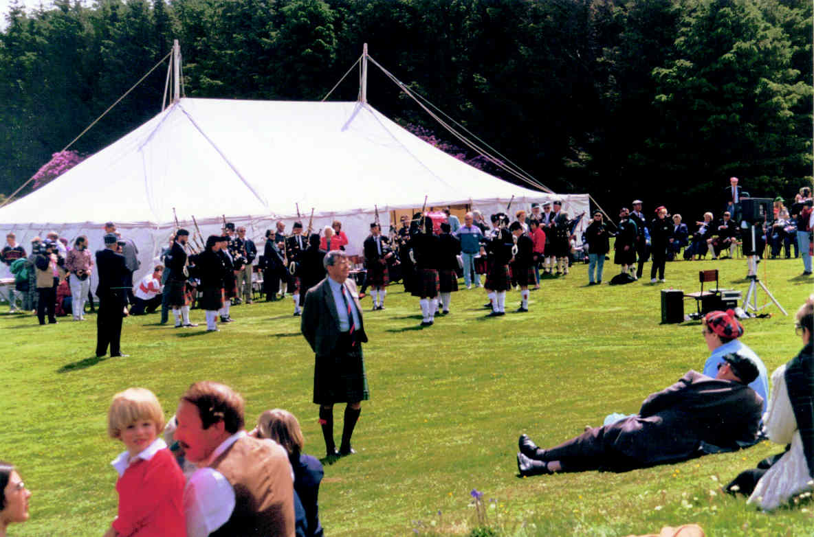 The Organiser of the Gathering, Lt Col Donald MacLean, introduces the Oban Pipe Band at Duart.