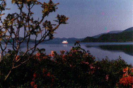 The morning boat for Inverary seen from Sir Fitzroy's inn The Creggans